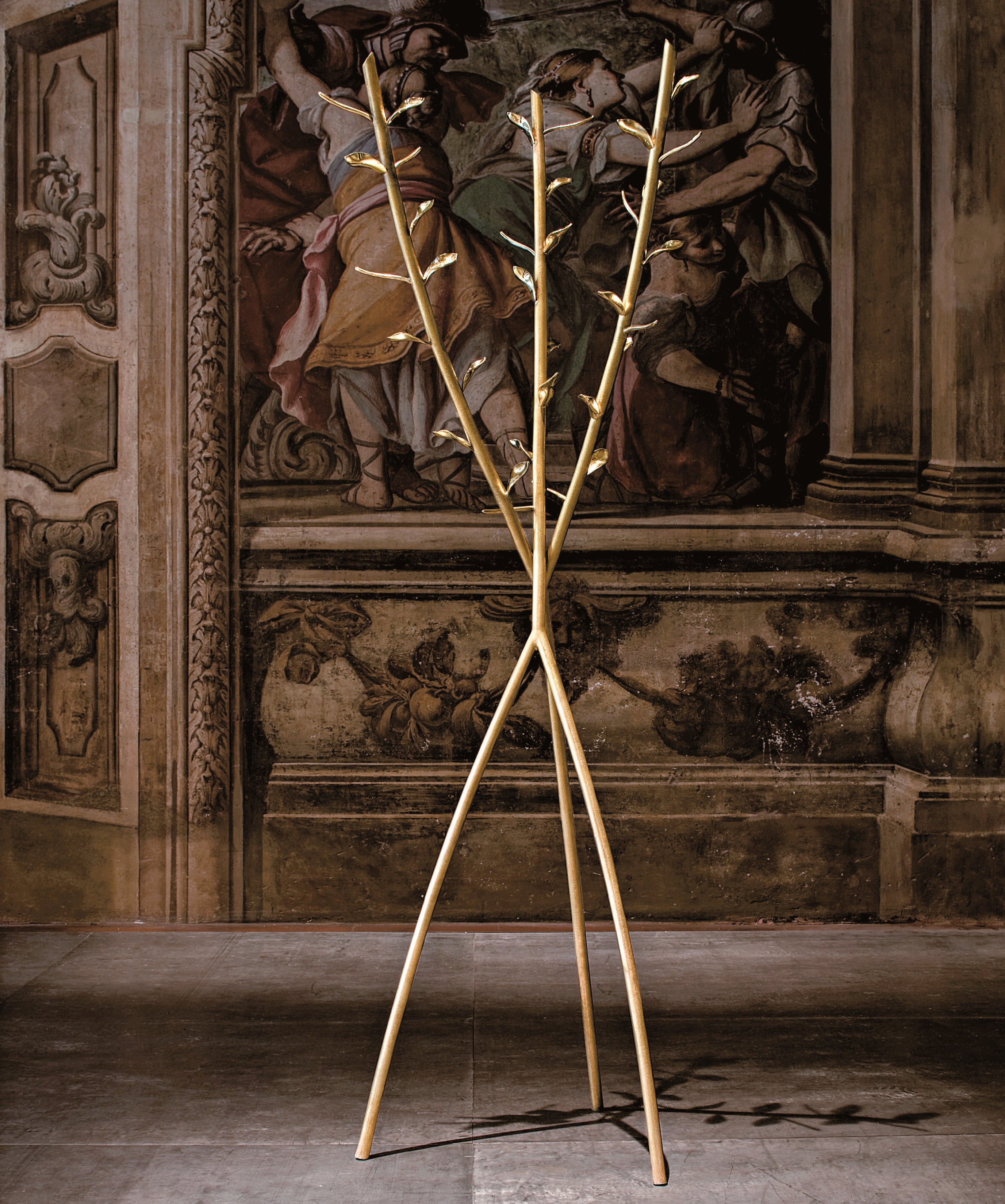Stojan na kabáty Acate je poetickou interpretací rozmarné přírody, navrženou Borekem Sipekem. Větvičky se vinou a splétají jako výhonky unesené vášní – láskou, která je navždy spojuje. Tato výjimečná užitná forma spojuje sochařský charakter a funkčnost.