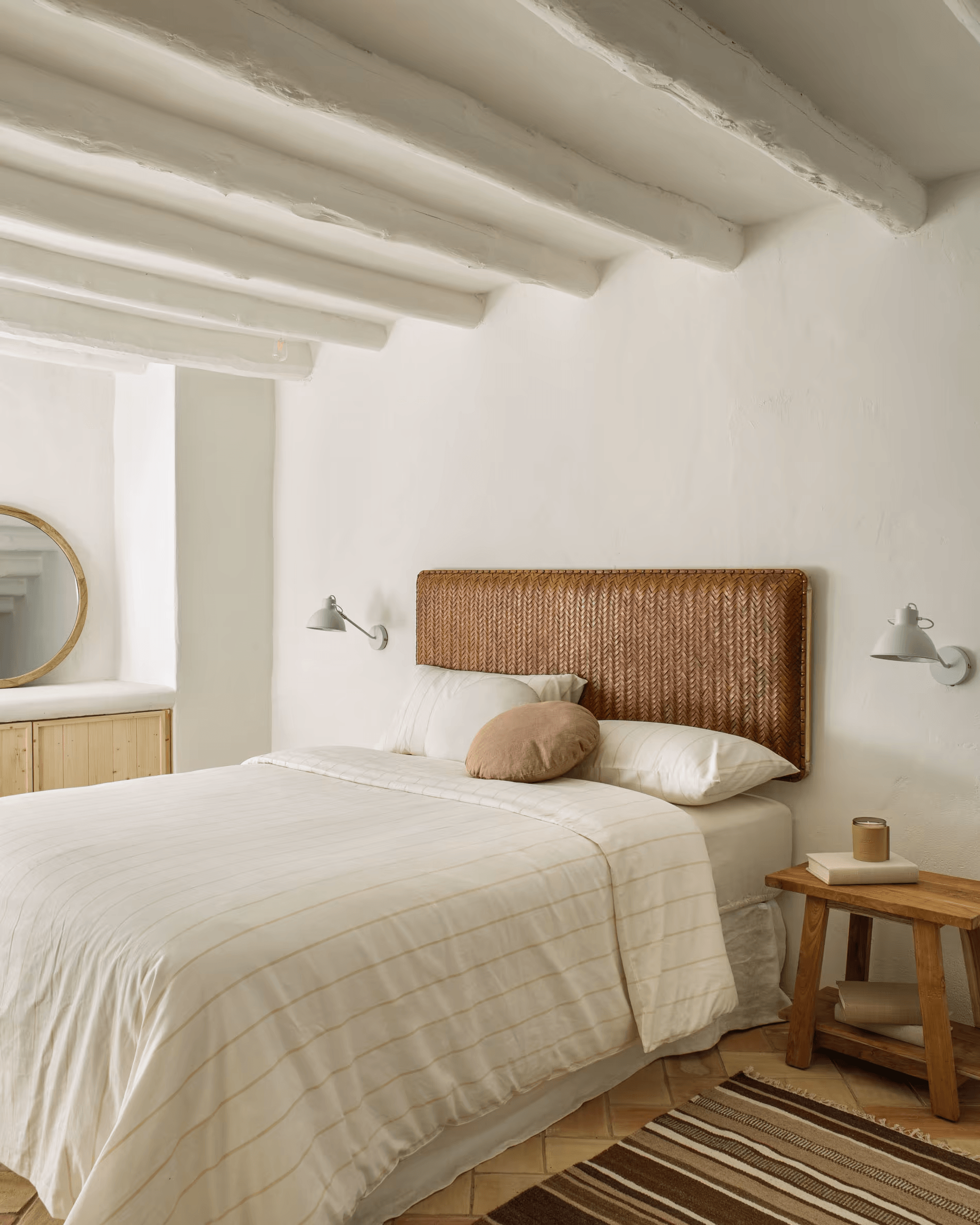 Natesa to ekskluzywne wezgłowie wykonane z ręcznie plecionej skóry bydlęcej i trwałej konstrukcji z litego drewna tekowego. Idealny, aby dodać do Twojej sypialni naturalny i autentyczny akcent, który mówi tak wiele o Tobie.