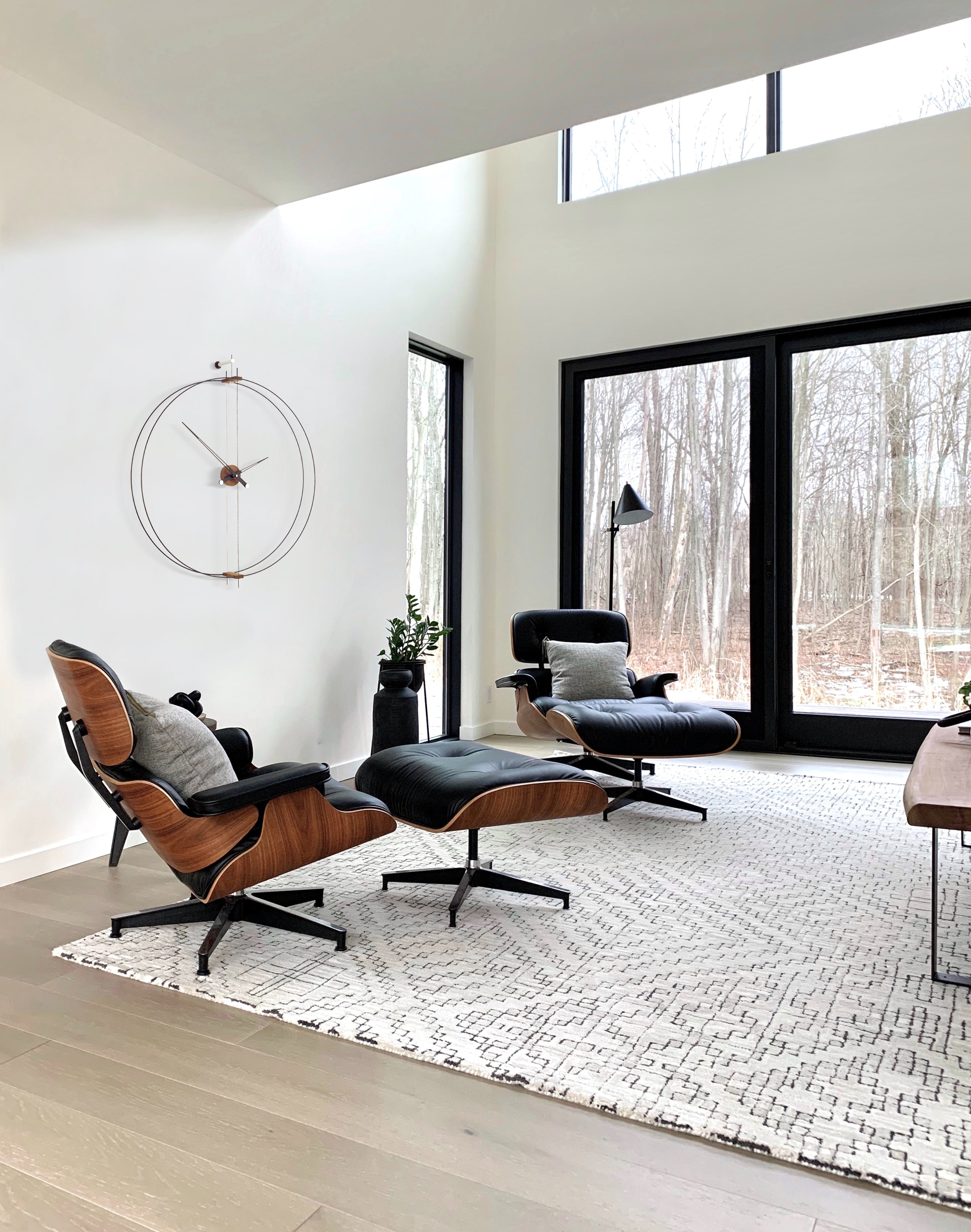 Ručně zpracované prvky z ořechového dřeva a černě lakované ručičky vytvářejí harmonickou kompozici materiálů. Precizní německý mechanismus UTS zaručuje spolehlivý a tichý chod, díky čemuž tyto hodiny nejsou pouze dekorací, ale také funkčním prvkem vybavení. Jsou to ikonické nástěnné hodiny, které dodávají prostoru rafinovaný, nadčasový charakter.
