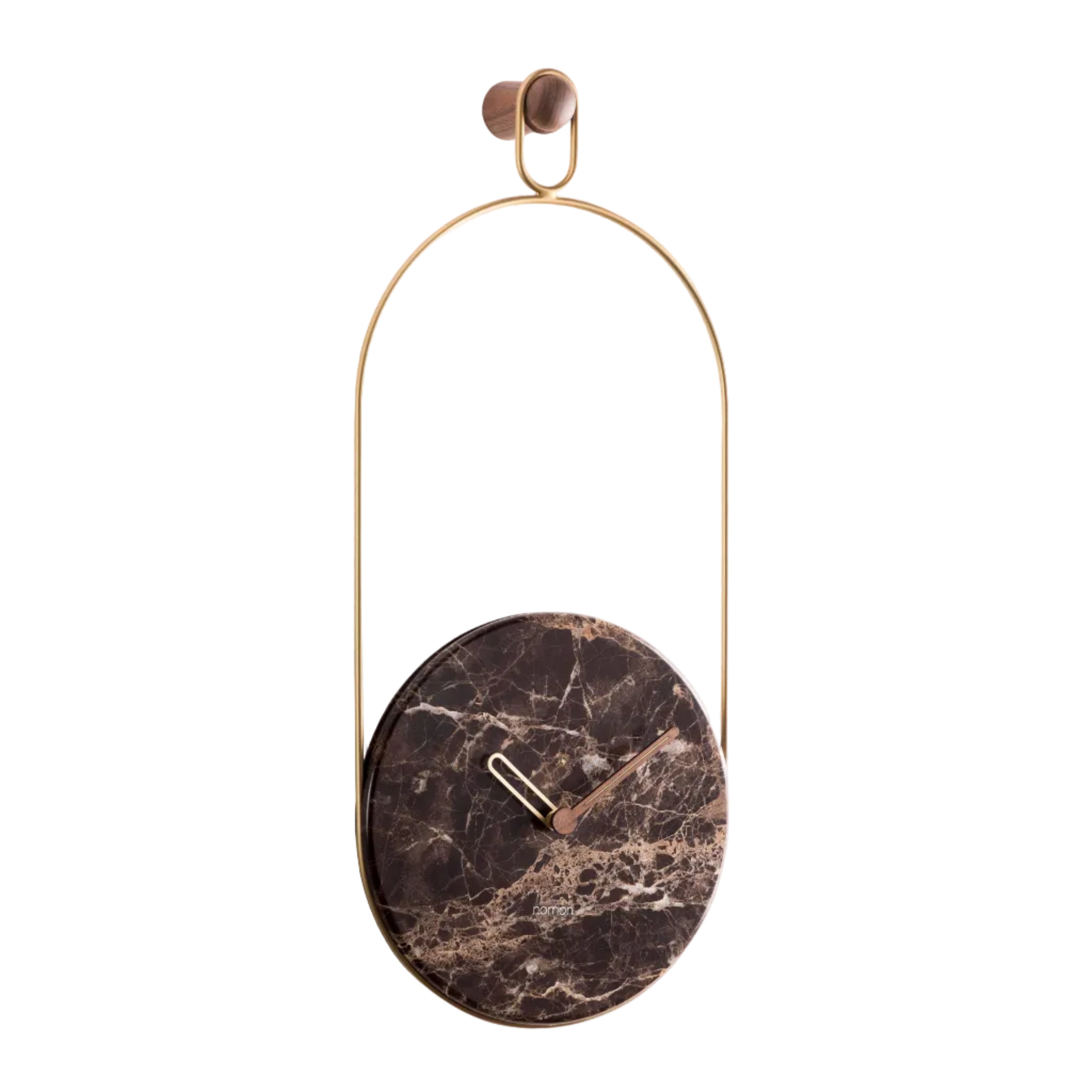 Nástěnné hodiny ESLABON hnědý mramor s mosazným detailem
