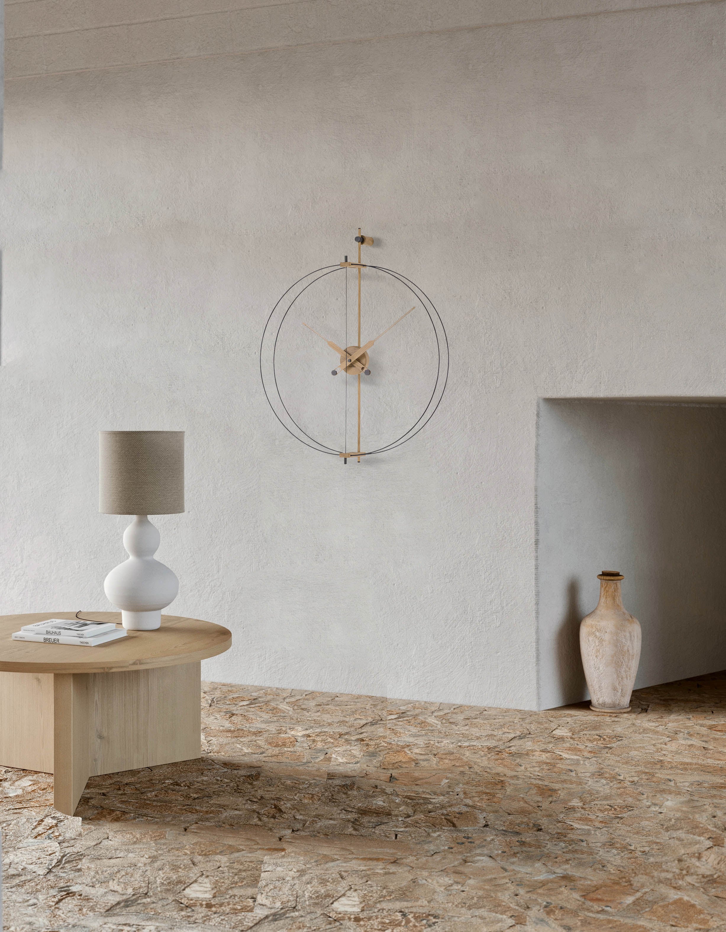 Nástěnné hodiny Mini Barcelona Premium jsou luxusní verzí ikonického modelu v kompaktnější podobě. Tyto hodiny okouzlují dvojitým rámem z skleněných vláken v mosazném nebo černém provedení, který jim dodává elegantní, glamour charakter. Štíhlá konstrukce a rafinované detaily činí moderní nástěnné hodiny výjimečnou dekorací stěny – ideální do obývacího pokoje, pracovny nebo stylového komerčního prostoru.