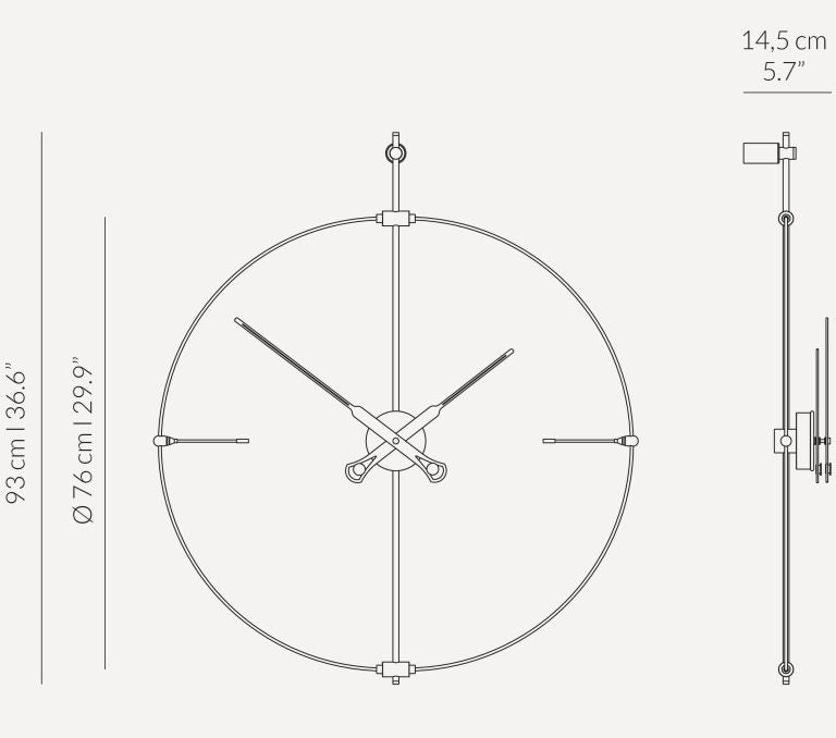 Dopracované proporce a ušlechtilé materiály činí z těchto designových nástěnných hodin harmonické spojení funkčnosti a dekorativní formy. Precizní německý mechanismus UTS zaručuje spolehlivost na léta, a elegantní konstrukce dělá z nástěnných hodin v mini verzi výrazný, ale subtilní akcent interiéru.