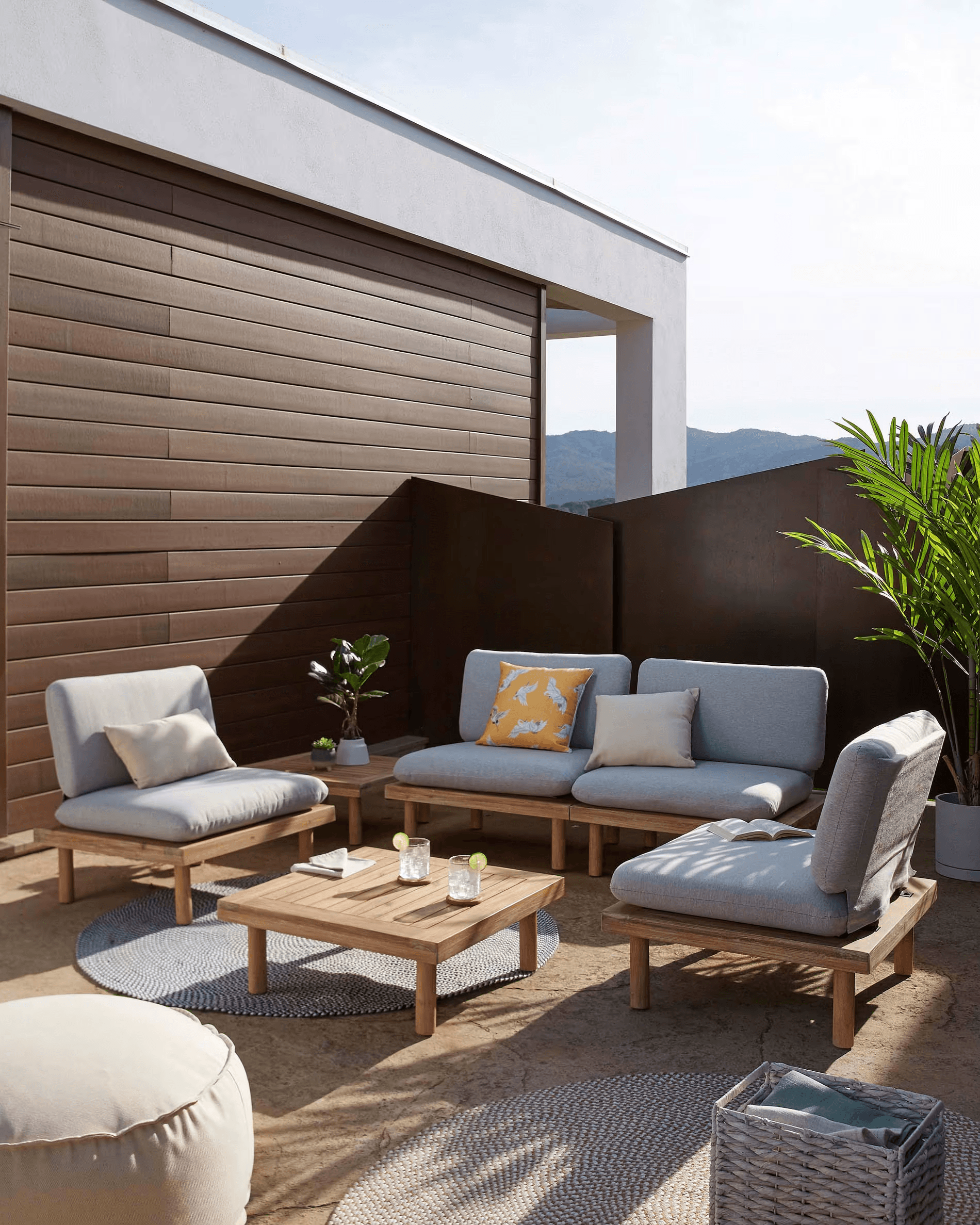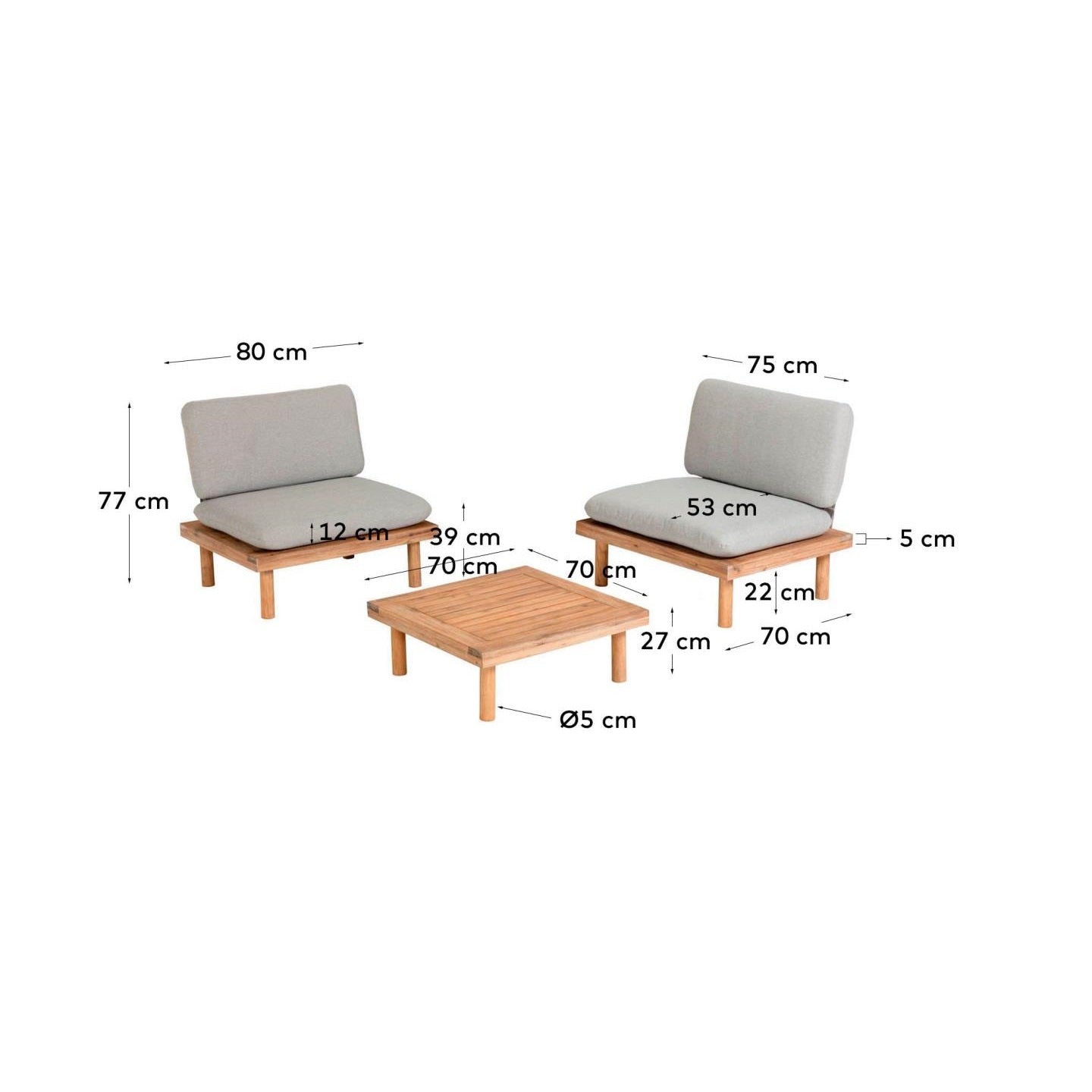 Sada křesel s odnímatelnými a voděodolnými polštáři a konferenčním stolkem vyrobeným z masivního akáciového dřeva. S Viridis můžete vytvářet různé sestavy, které se hodí do každé místnosti. Záleží jen na vás. Dáváte přednost 2 křeslům nebo 1 velké pohovce?