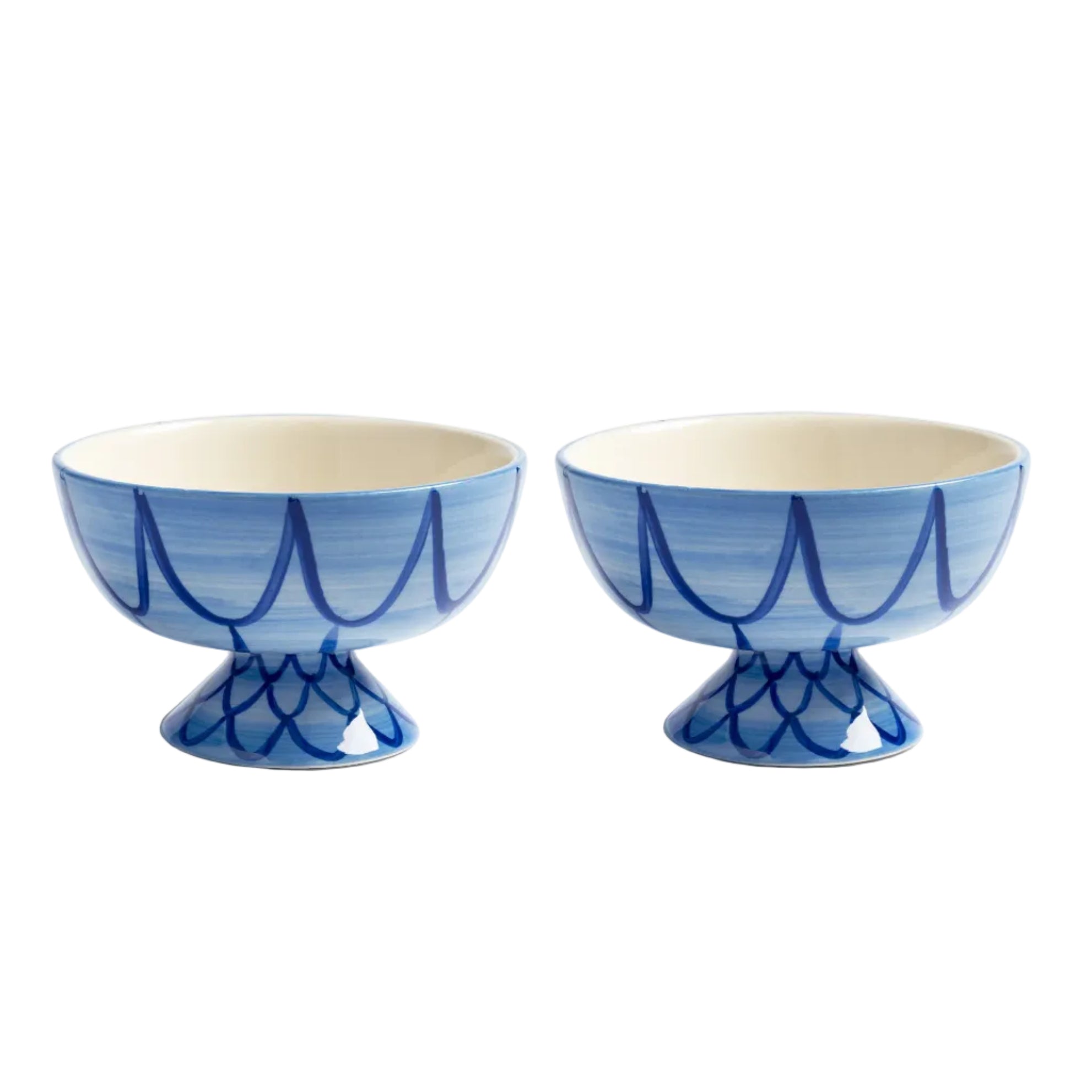 Sada misek z kolekce Sirène přináší na stůl jemnou eleganci inspirovanou podvodním světem. Ručně malované vzory a geometrická textura odkazující na strukturu rybích šupin dělají z misek okouzlující kousek s jemným pohybem formy a uměleckým charakterem. Modrá barevnost dodává celku lehkost a skvěle se hodí jak k světlým, tak i výraznějším aranžmá stolu.