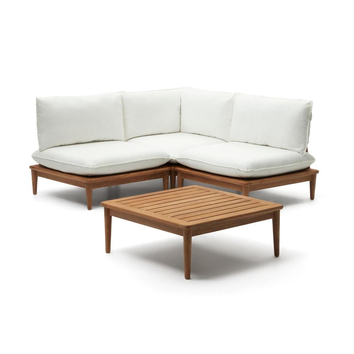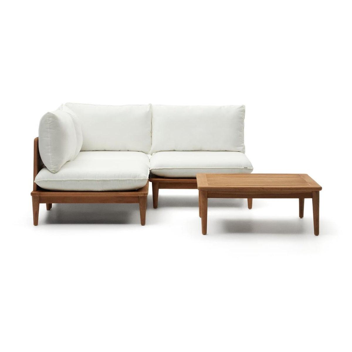 Zahradní souprava s 3-místným modulárním rohovým sedacím nábytkem PORTITXOL z lehkého teakového dřeva