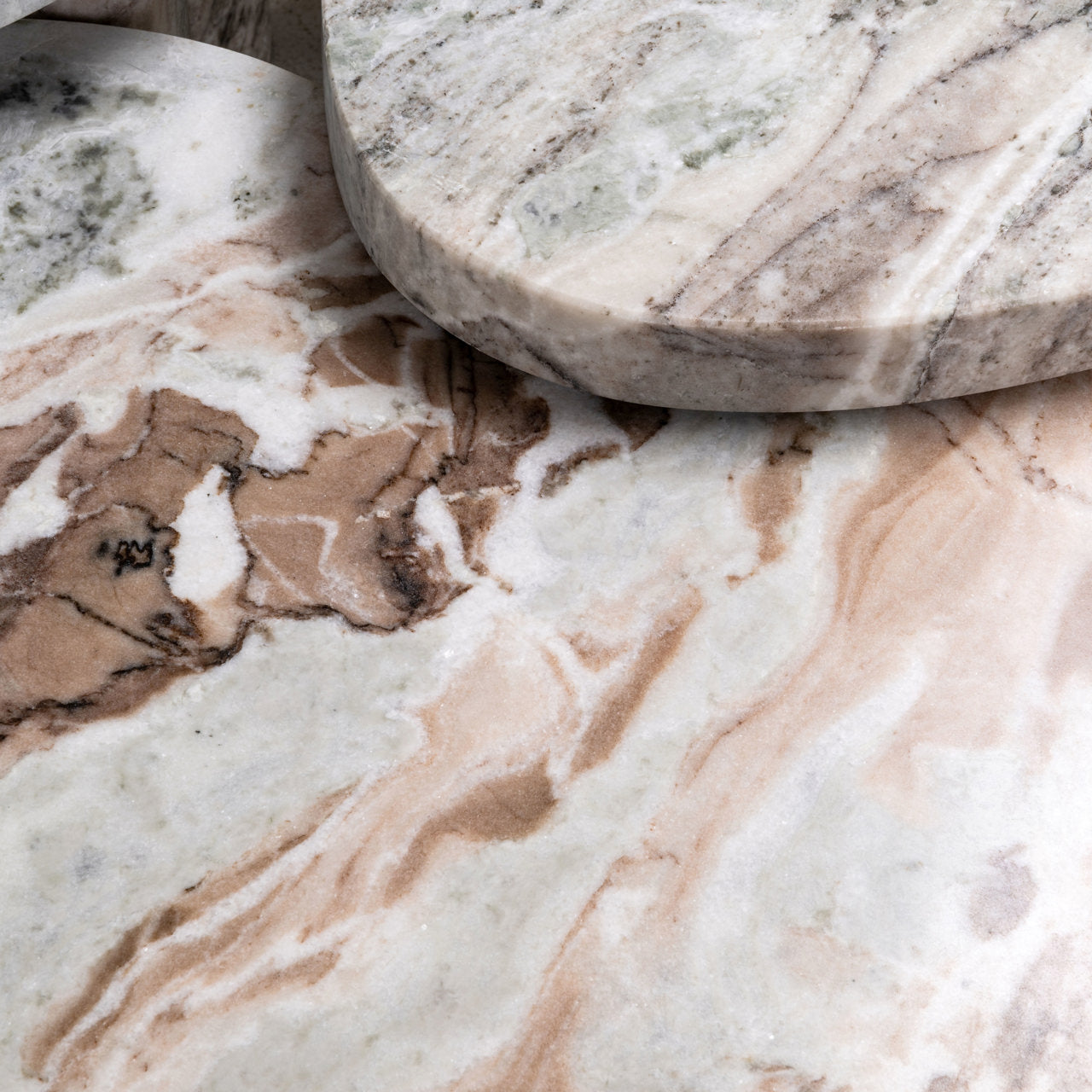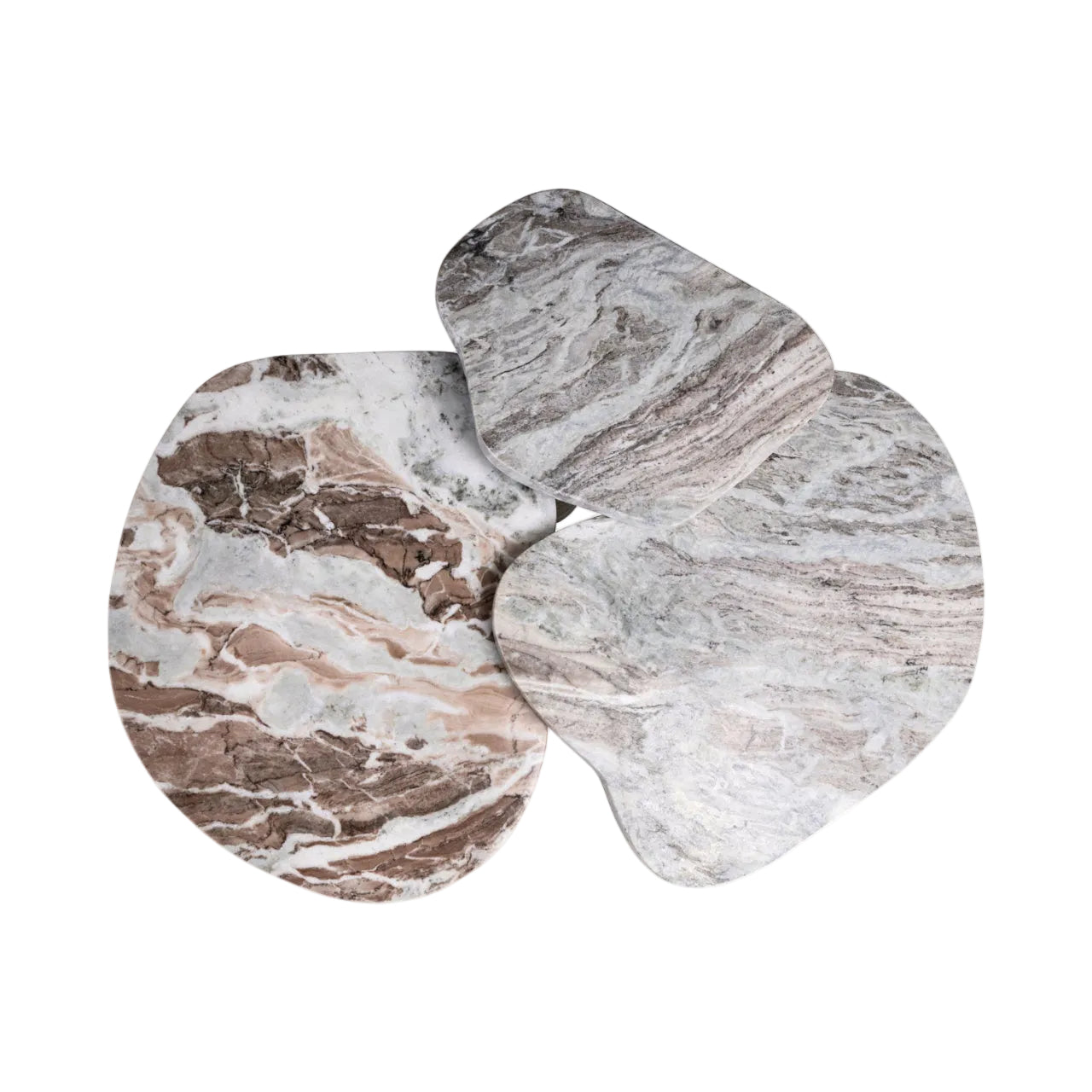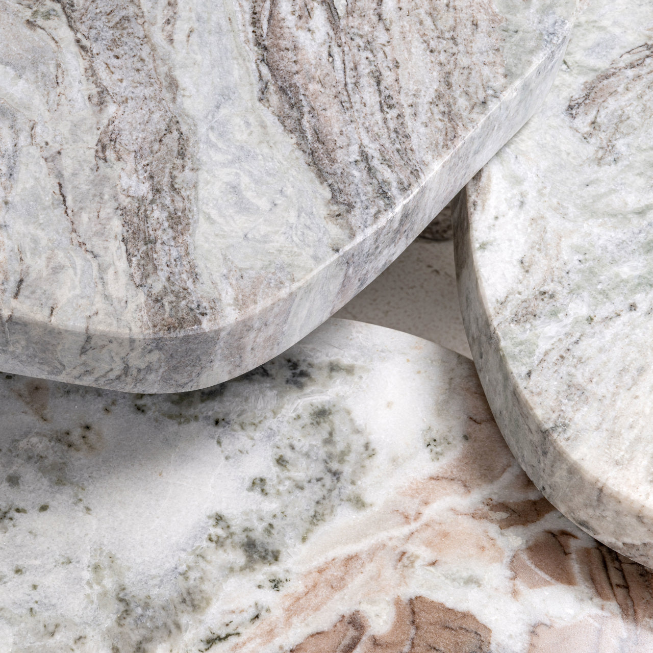 Vyrobené z mramoru moderní konferenční stolky přinášejí do prostoru eleganci a přirozenou krásu kamene. To je stylová volba pro moderní, minimalistické a luxusní interiéry, která dodává aranžaci charakter a vytváří harmonickou, útulnou atmosféru.