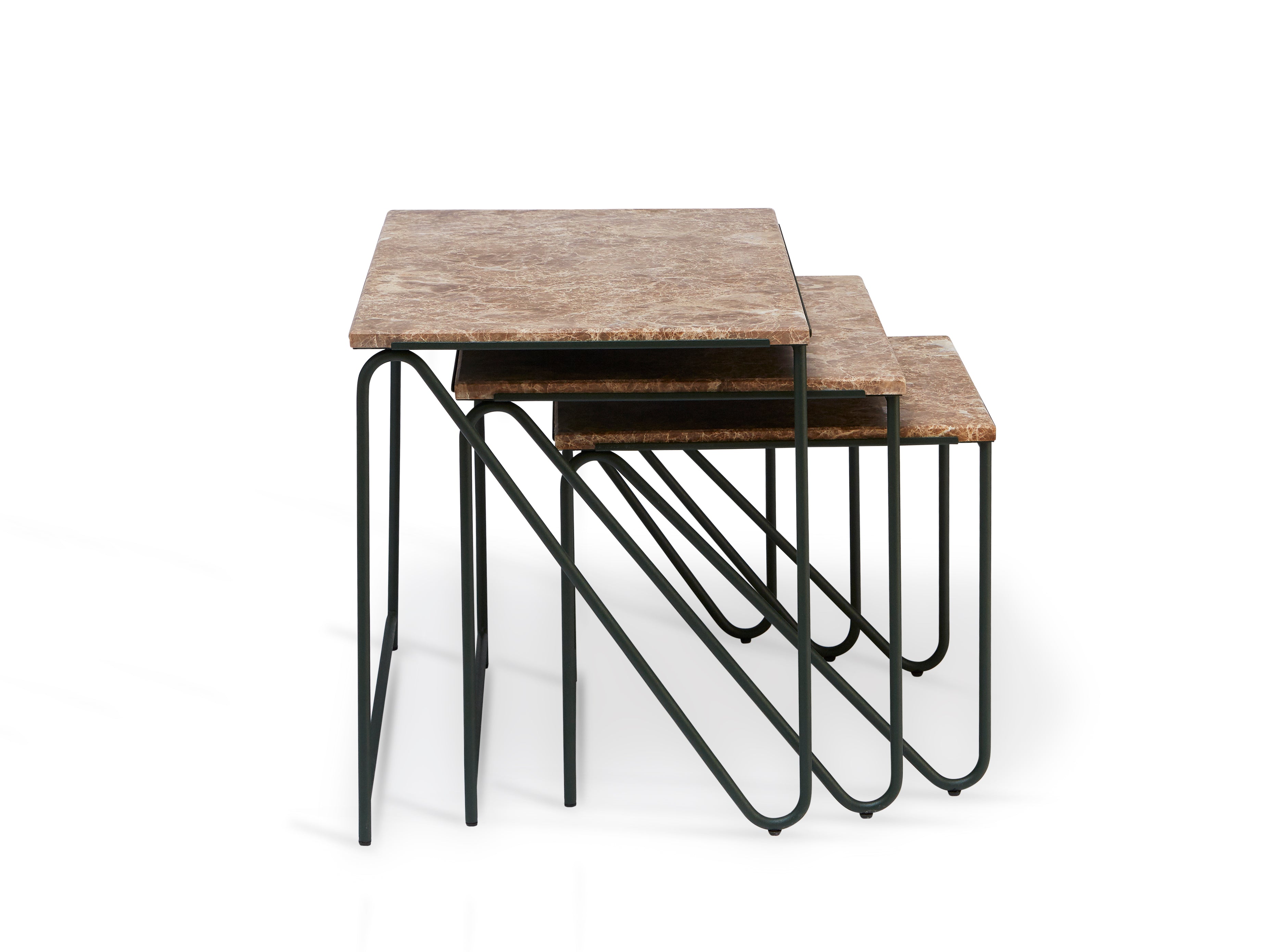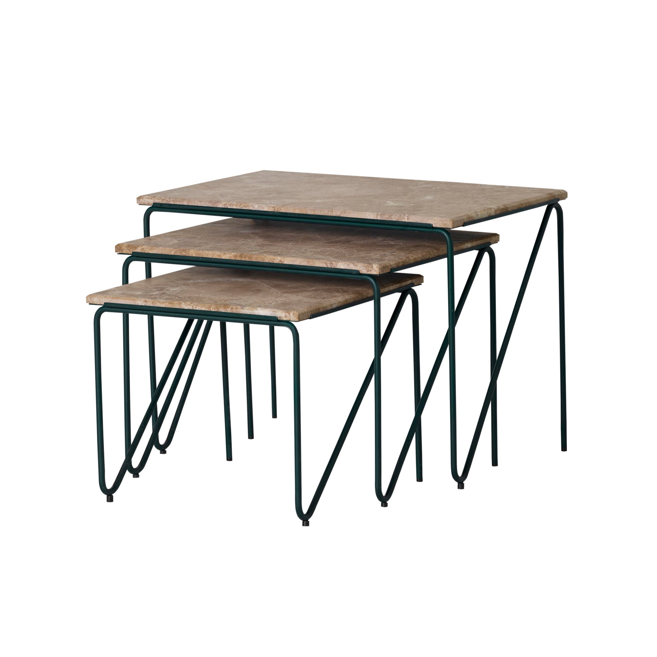 Zestaw stolików kawowych TRIPTYCH brązowy marmur z zieloną podstawą