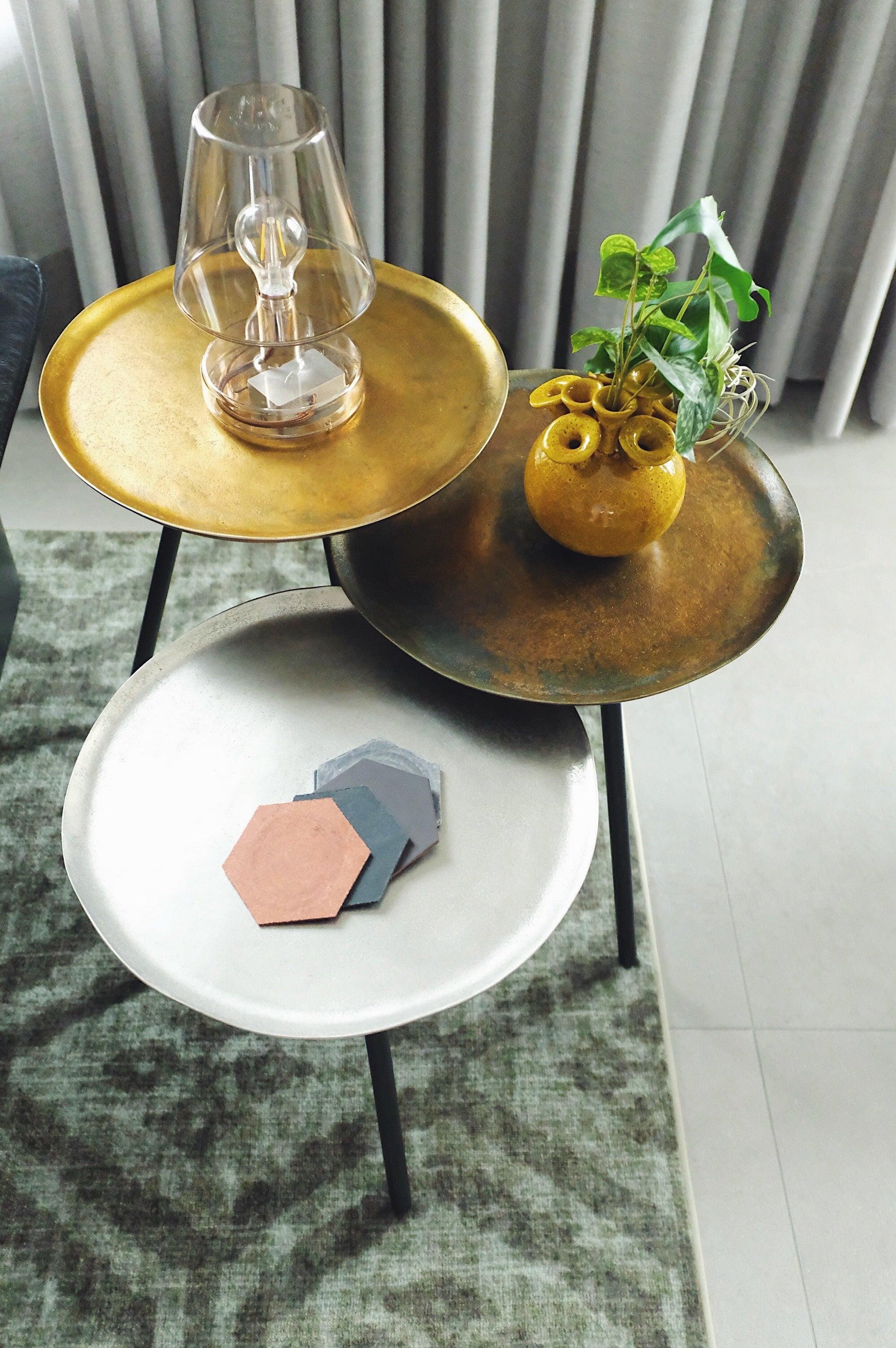 Sada stolků Skippy v měděné barvě je volbou pro milovníky dobrého designu a funkčního využití. Díky sadě stolků Jute můžete vytvořit soudržný interiér, který přinese do Vašeho prostoru pořádek a harmonii. Každý z nich má černě lakovaný železný podstavec s hliníkovou deskou. V kombinaci s pohovkou nebo sedačkou doplní Váš obytný prostor.