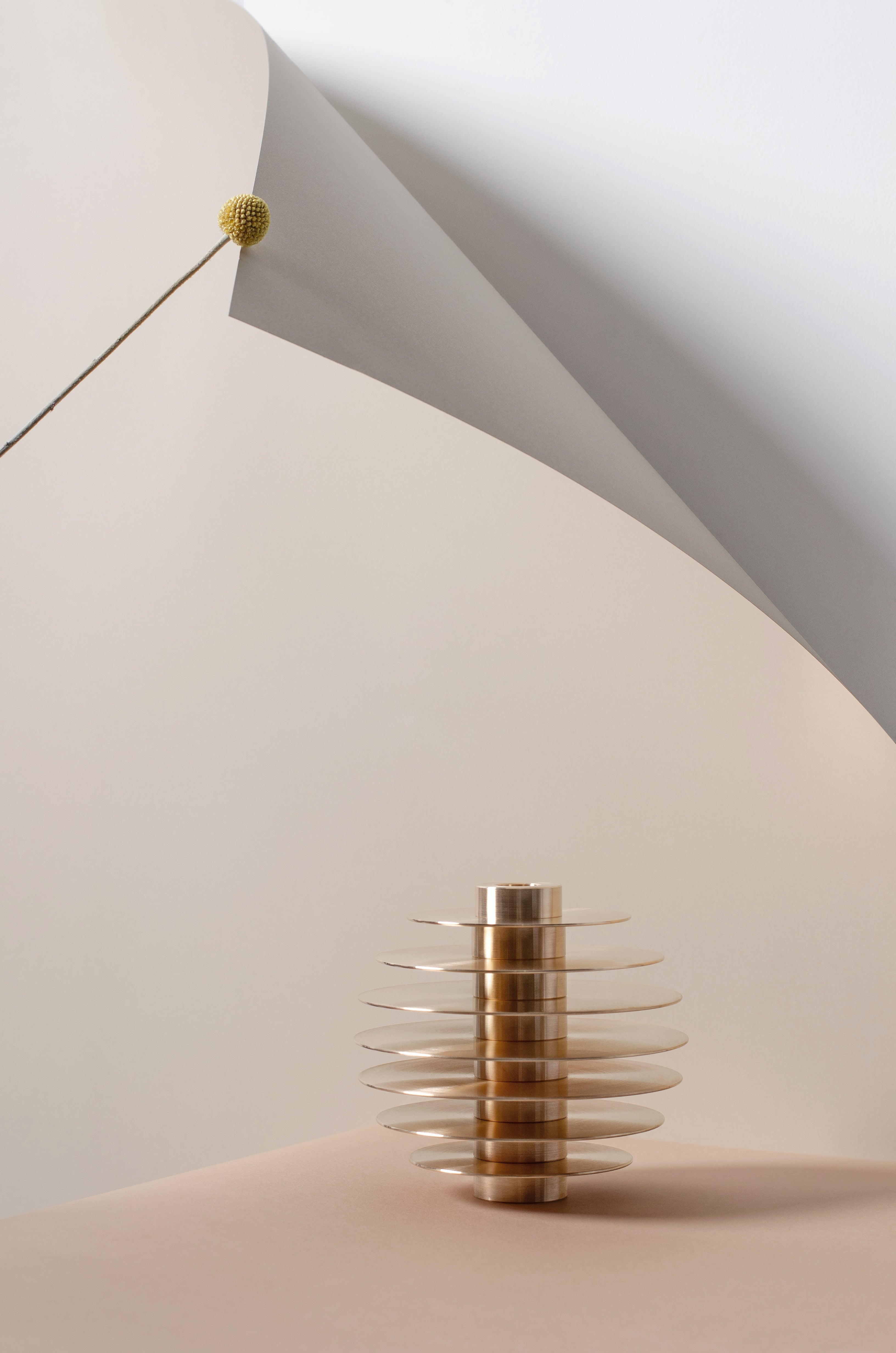 Sada svícnů ORB je moderní socha skládající se ze sedmi kovových držáků na svíčky, uspořádaných jeden na druhém, vytvářejících kulatou formu. Navrženo s ohledem na funkčnost, každý svícen má dvě strany, které mohou pojmout jak dlouhé, tak i tealight svíčky. Sada je k dispozici v provedení z mosazi nebo nerezové oceli, díky čemuž se skvěle hodí jak jako série sedmi svícnů, tak jako samostatná socha v každém interiéru.