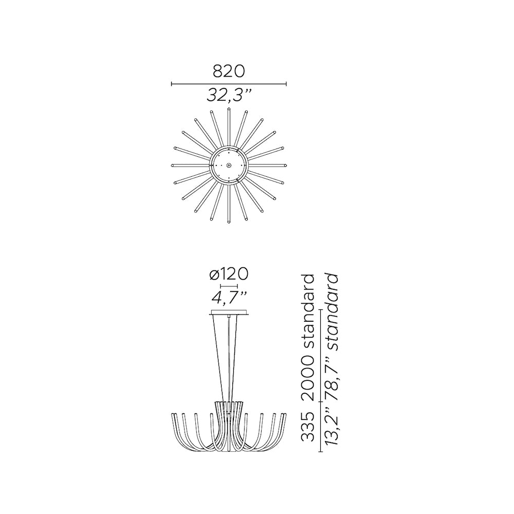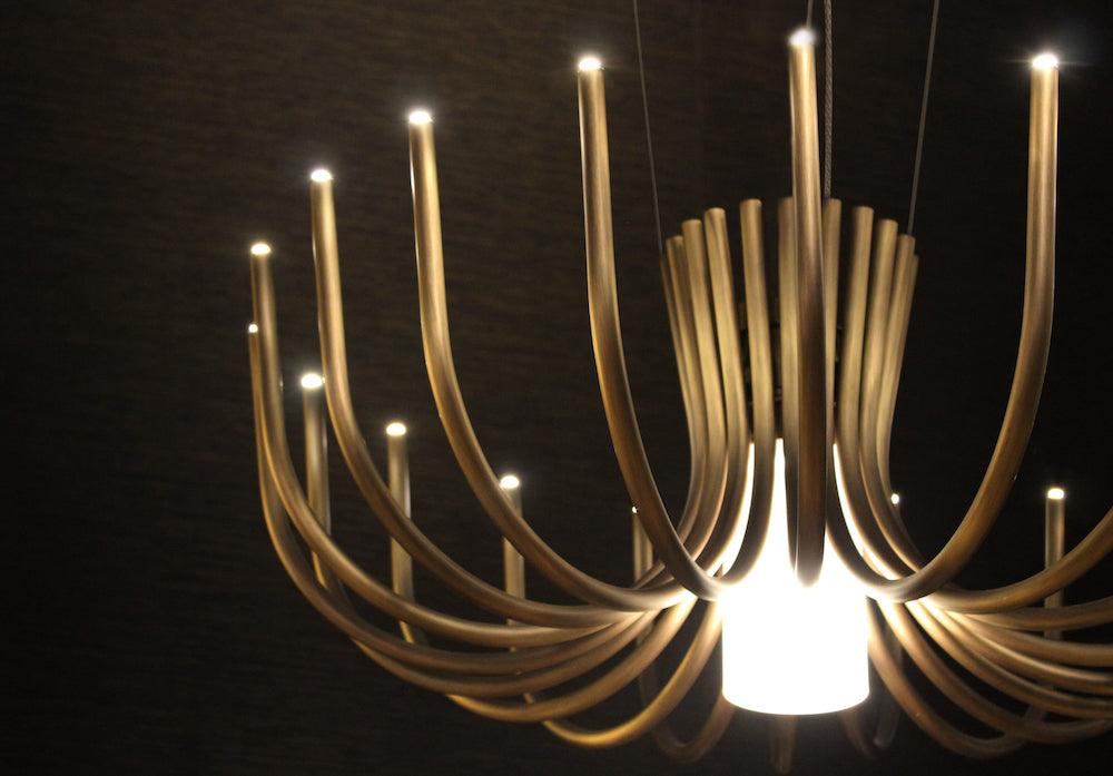 Stropní svítidlo Stardust je inspirováno velkými klasickými lustry, ale získává minimalističtější vzhled díky použití kovu bez dalších dekorativních prvků. Stardust poskytuje dvojité osvětlení díky mikro LED diodám umístěným na koncích ramen a žárovce ve skleněném válci, která slouží jako hlavní zdroj světla.